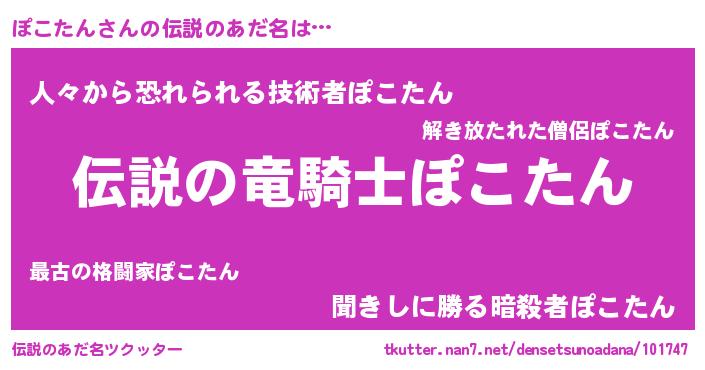 | ヒーロー風カッコイイあだ名 | 『仮面ポコダー』『スーパーポコタン』 |
