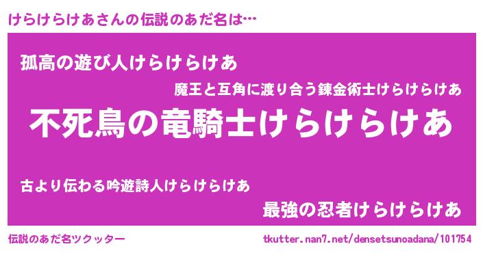 | ポケモン風あだ名 | 『ケラゴンZ』『ケラチュウ』 |