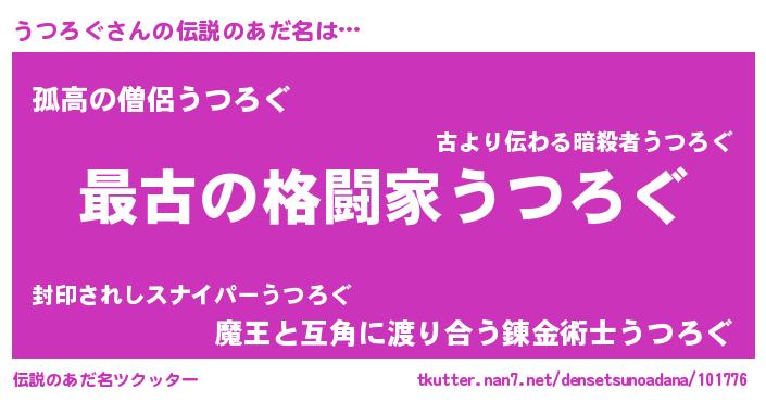 | 意味不明あだ名 | 『自称うつろぐ』『うつろぐフォーエバー』 |