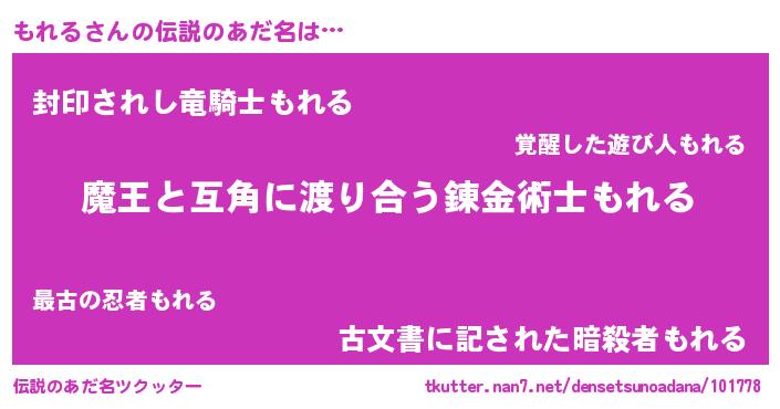 | ヒーロー風カッコイイあだ名 | 『慈愛の使者もれる』『スーパーモレル』 |