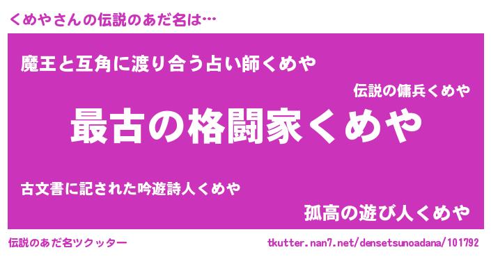 | 意味不明あだ名 | 『もやし科くめや属』『自称くめや』 |