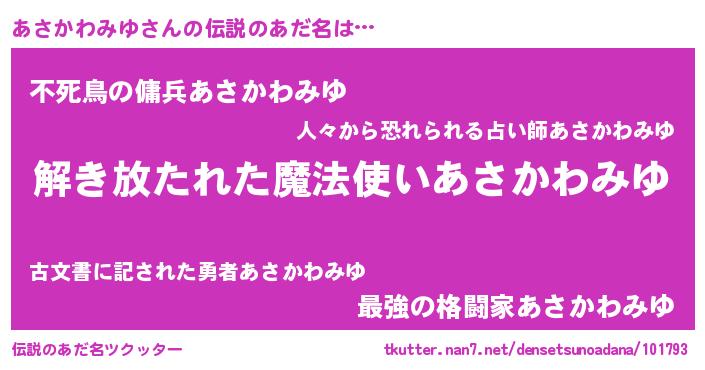 | 意味不明あだ名 | 『とにかく怪しいあさかわみゆ』 |