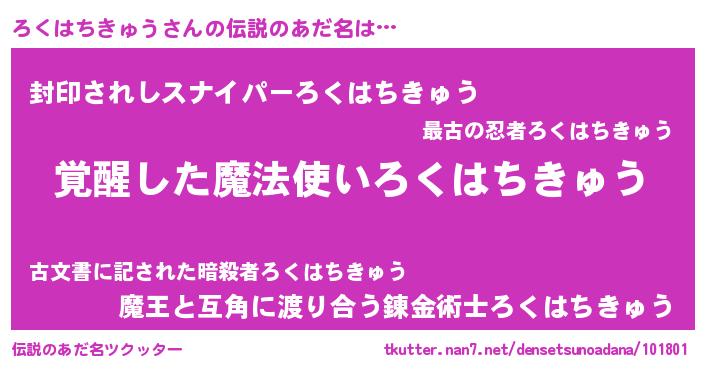| ヒーロー風カッコイイあだ名 | 『天弓騎士ロク』『仮面ロクダー』 |