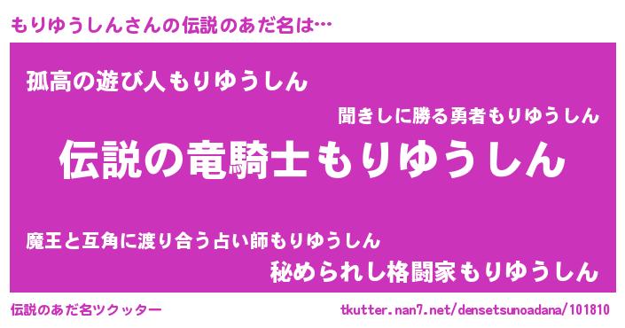 | ヒーロー風カッコイイあだ名 | 『スーパーモリユウシン』『天弓騎士モリ』 |