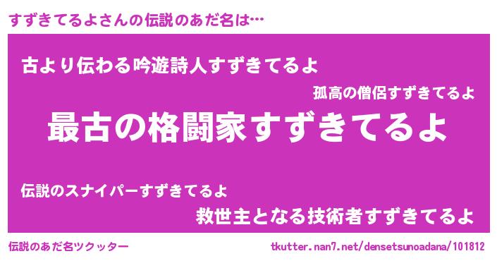 | 意味不明あだ名 | 『自称すずきてるよ』 |