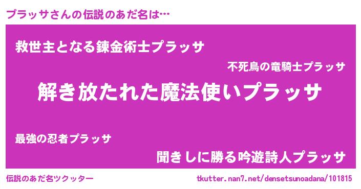 | 男性向けラノベタイトル風あだ名 | 『ダンジョンにプラッサを求めるのは間違っているだろうか』 |