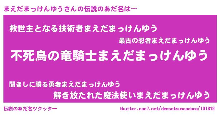 | 女子向けラノベタイトル風あだ名 | 『まえだまっけんゆう姫と円卓の騎士』 |