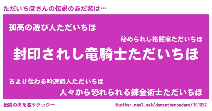 | 意味不明あだ名 | 『ペロリンただいちほ』『自称ただいちほ』 |