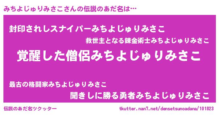 | 男性向けラノベタイトル風あだ名 | 『この素晴らしい世界にみちよじゅりみさこを!』 |