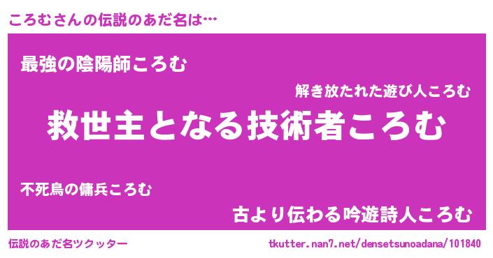| 女子向けラノベタイトル風あだ名 | 『死神ころむの再婚』『ころむ伯爵の花嫁』 |