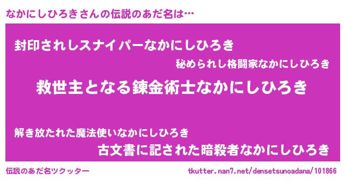 | 胡散臭い通販商品みたいなあだ名 | 『モンドセレクションを受賞した隕石のかけら…その名も「なかにしひろき」』 |