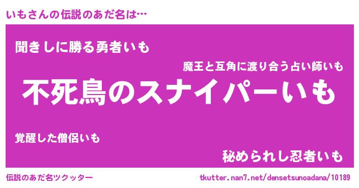 | ヒーロー風カッコイイあだ名 | 『サイバー戦士イモ』『スーパーイモ』 |