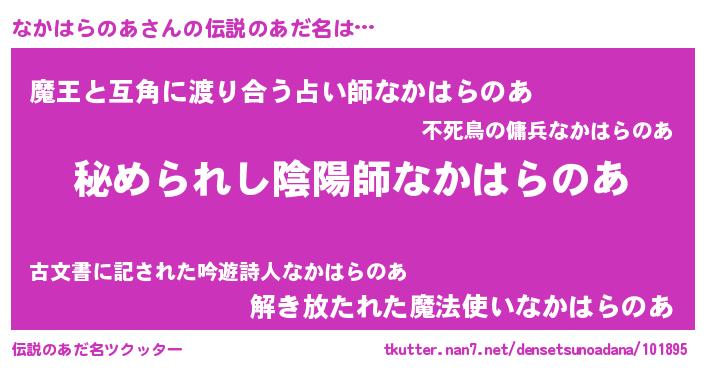 | 意味不明あだ名 | 『なかはらのあフォーエバー』 |