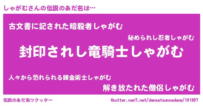 | ヒーロー風カッコイイあだ名 | 『スーパーシャガム』『最強戦士シャガム』 |