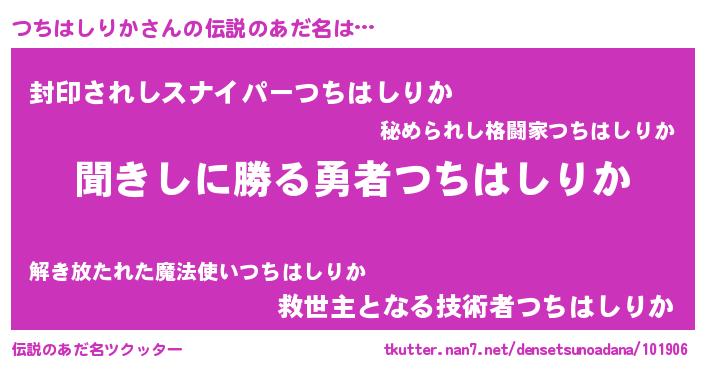 | 意味不明あだ名 | 『永久保存つちはしりか』 |