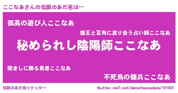 | 意味不明あだ名 | 『ここなあフォーエバー』『自称ここなあ』 |