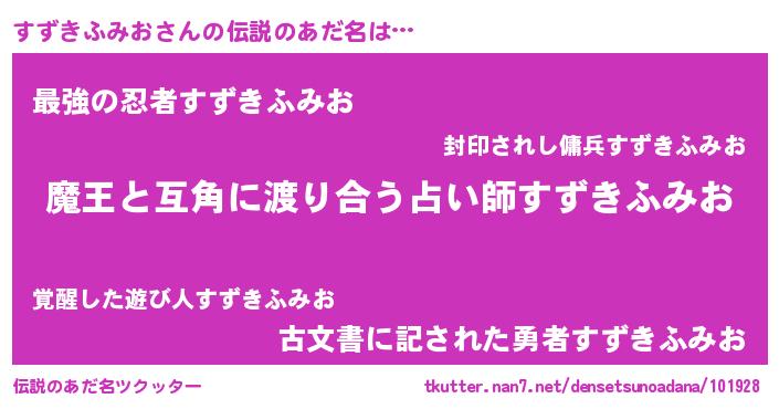 | ヒーロー風カッコイイあだ名 | 『仮面スズダー』『最強戦士スズキフミオ』 |