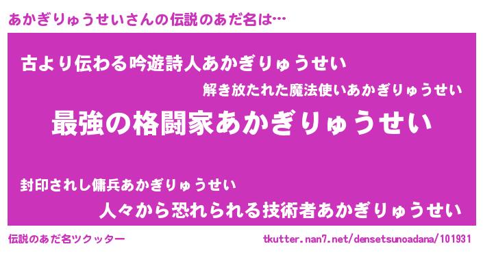 | ファンタジー風あだ名 | 『エターナルアカギリュウセイー』 |