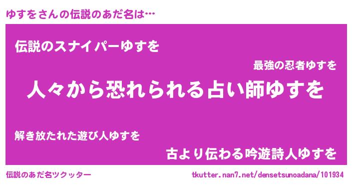 | ヒーロー風カッコイイあだ名 | 『正義の使者ゆすを』『スーパーユスヲ』 |