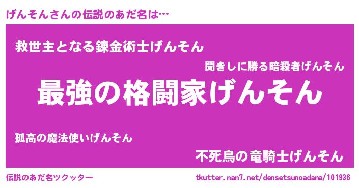 | ヒーロー風カッコイイあだ名 | 『ウルトラげんそんマン』『仮面ゲンダー』 |