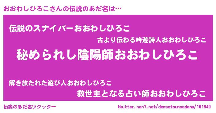| ファンタジー風あだ名 | 『エターナルオオワシヒロコー』 |