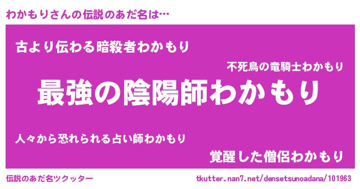 | 意味不明あだ名 | 『住所不定無職わかもり(91歳)』 |