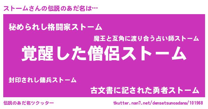 | 女子向けラノベタイトル風あだ名 | 『ストーム様がみてる』 |