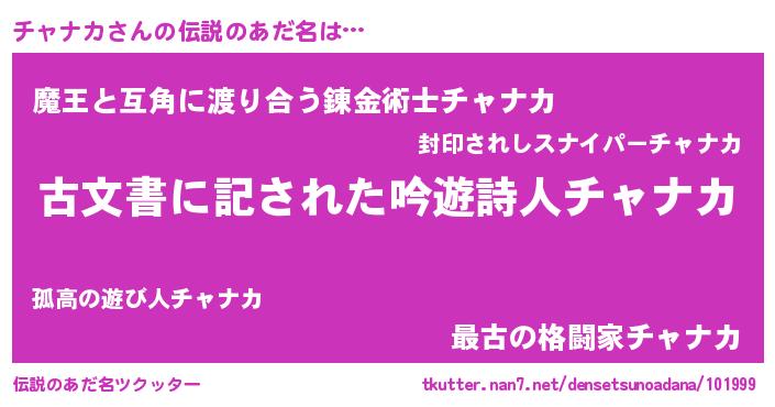 | 意味不明あだ名 | 『永久保存チャナカ』『自称チャナカ』 |