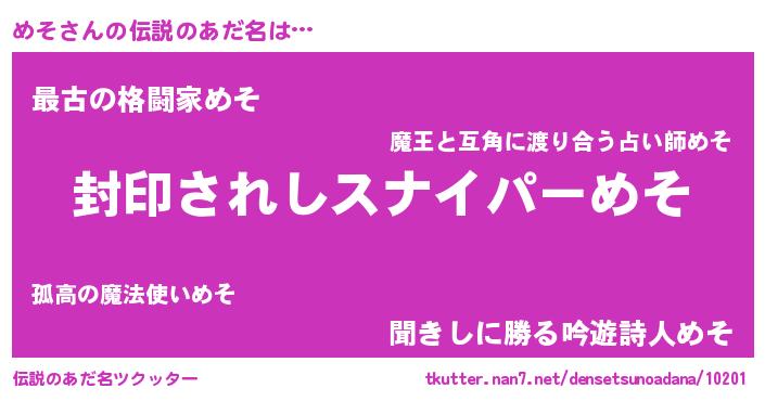| ヒーロー風カッコイイあだ名 | 『究極戦士メソ』『スーパーメソ』 |
