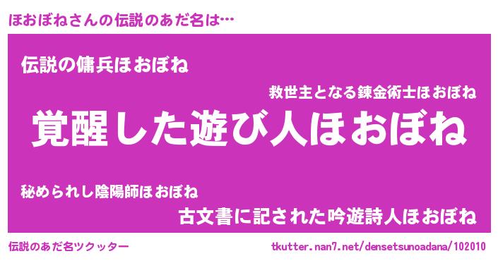 | ヒーロー風カッコイイあだ名 | 『最強戦士ホオボネ』『黄金騎士ホオ』 |
