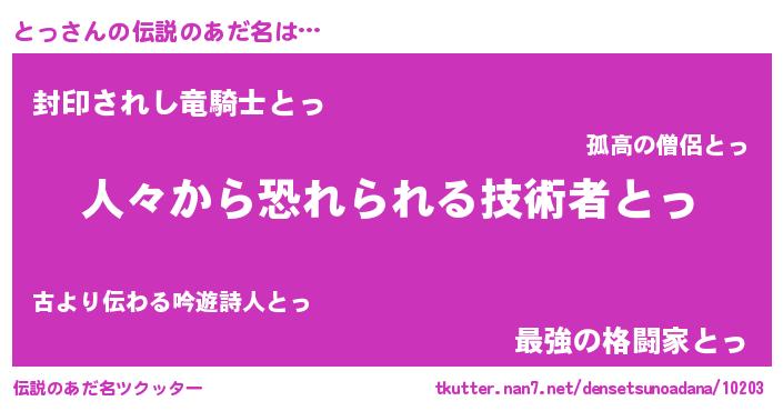 | ポケモン風あだ名 | 『トッゴンZ』『トックウザ』 |