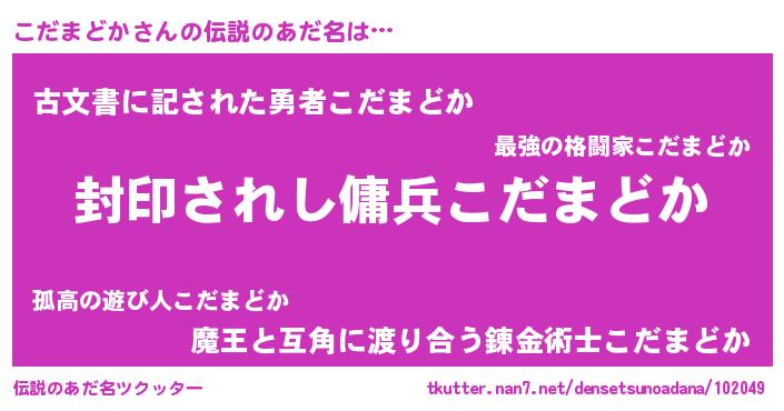 | 意味不明あだ名 | 『住所不定無職こだまどか(43歳)』 |