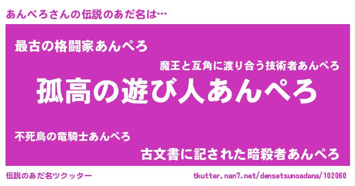| ヒーロー風カッコイイあだ名 | 『暗黒騎士アン』『ウルトラあんぺろマン』 |