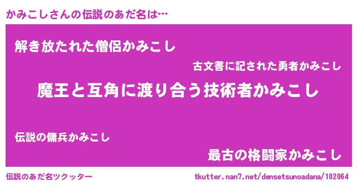 | 女子向けラノベタイトル風あだ名 | 『かみこし恋絵巻』『闇のかみこし』 |
