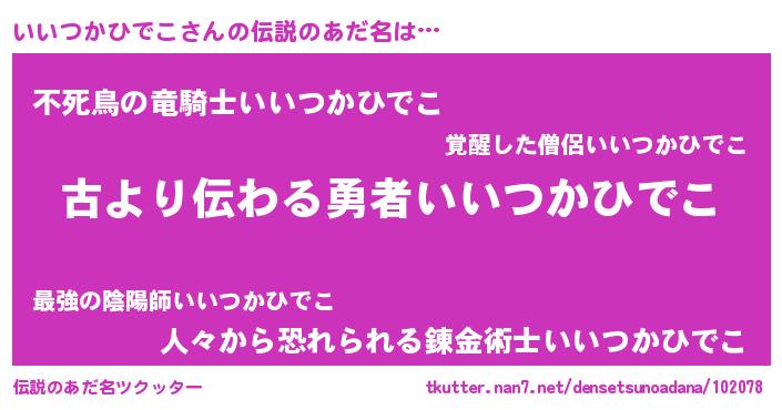 | 意味不明あだ名 | 『住所不定無職いいつかひでこ(93歳)』 |
