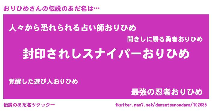 | 意味不明あだ名 | 『ペロリンおりひめ』『自称おりひめ』 |