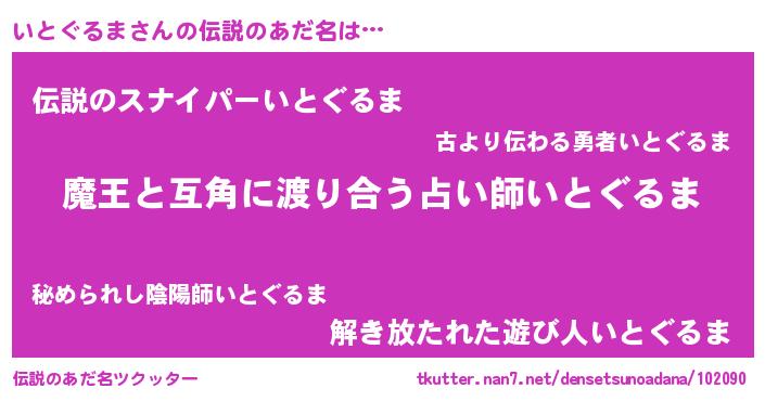 | 男性向けラノベタイトル風あだ名 | 『おまえをオタクにしてやるから、俺をいとぐるまにしてくれ! 』 |