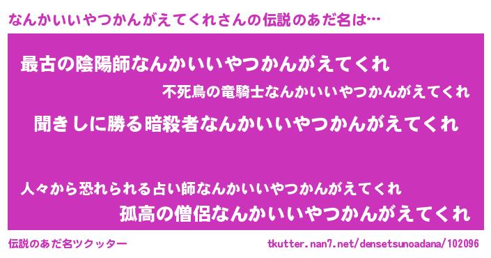 | ヒーロー風カッコイイあだ名 | 『ネオナンカイイヤツカンガエテクレ』 |