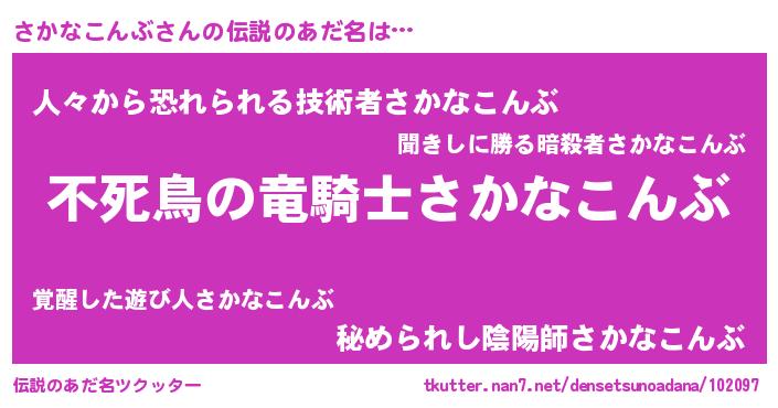 | 男性向けラノベタイトル風あだ名 | 『さかなこんぶの憂鬱』 |