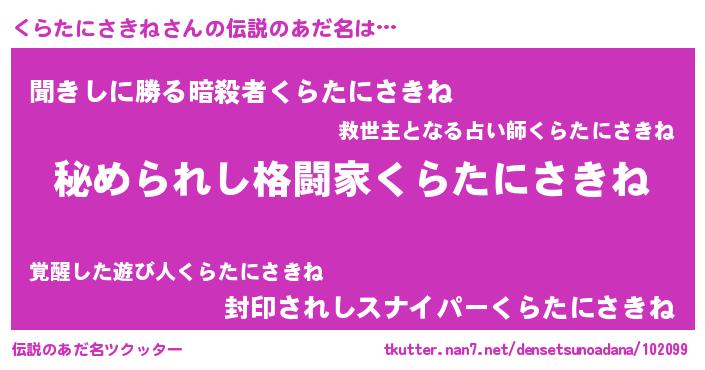 | 意味不明あだ名 | 『自称くらたにさきね』 |