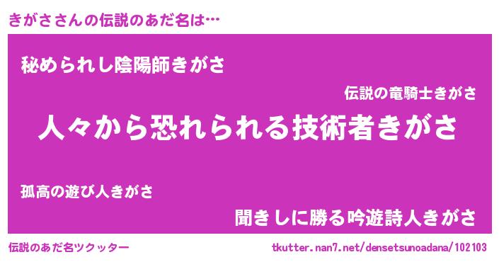 | 女子向けラノベタイトル風あだ名 | 『きがさなんてお断りですっ。』 |