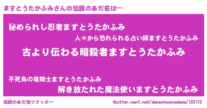 | 胡散臭い通販商品みたいなあだ名 | 『来世でも幸せになれる健康食品…その名も「ますとうたかふみ」』 |