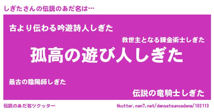 | ヒーロー風カッコイイあだ名 | 『暗黒騎士シギ』『ネオシギタ』 |