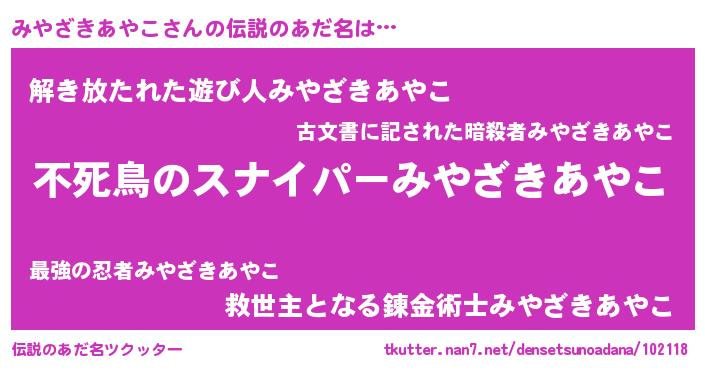 | ポケモン風あだ名 | 『ミヤチュウ』『ヒミヤザキアヤコ』 |