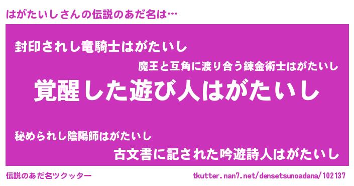 | 男性向けラノベタイトル風あだ名 | 『はがたいしの嫁は女の子じゃないと思った?』 |