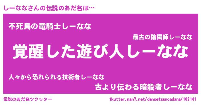 | 男性向けラノベタイトル風あだ名 | 『しーななに滅ぼされるだけの簡単なお仕事です』 |