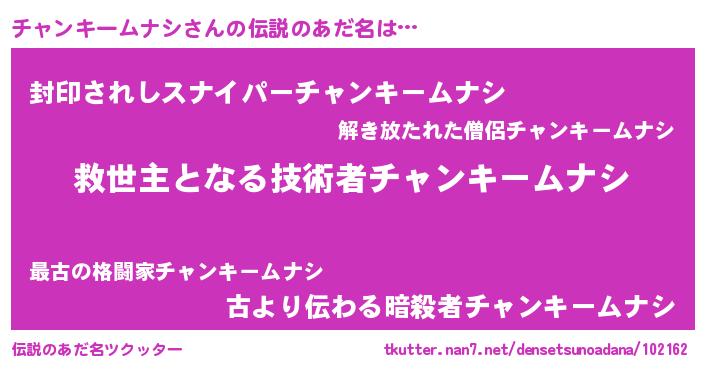 | ヒーロー風カッコイイあだ名 | 『慈愛の使者チャンキームナシ』 |