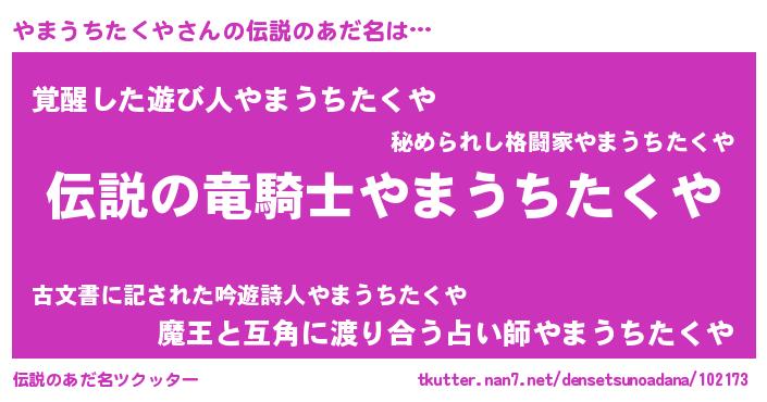 | 意味不明あだ名 | 『住所不定無職やまうちたくや(7歳)』 |