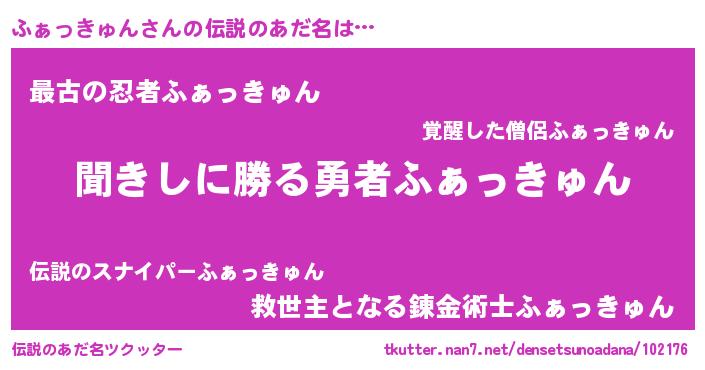 | 意味不明あだ名 | 『住所不定無職ふぁっきゅん(91歳)』 |