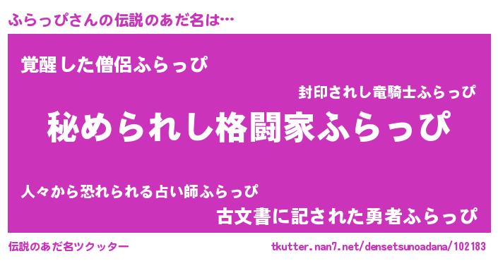 | 男性向けラノベタイトル風あだ名 | 『緋弾のフラッピ』 |